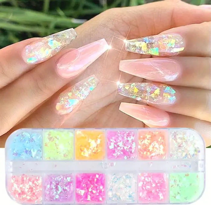 This set of 12 compartments of shaded nail decals. It’s easy to pick different colors to adorn your nails. The included elements change color with holographic effects at various angles, giving you an elegant nail style. To use, first prep your nails, lay down a base coat, and brush on the glitter sequins. Finish with transparent paint. Moreover, these glitters are simple to wash away with a rinse. Crafted with environmentally friendly materials, these nail art decorations are safe for all ages. Their broad application makes them perfect for not just nail art, but also other areas such as your face, body, eye shadow, and more. Perfect for personal use or professional nail salons, they add fun and charm to your personal style.