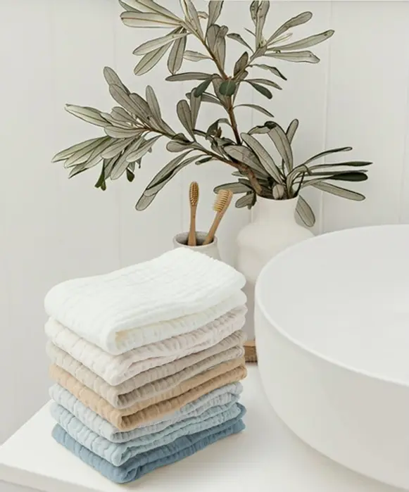 These face wash cloths are made from soft muslin, offering maximum absorption and a skin-friendly experience. Perfect for sensitive skin. Ideal for everyone, these cloths help clear dirt, makeup, and cleansers. Eco-friendly and reusable, they soften over time and are ultra-absorbent. Convenient for on-the-go facial care and dry quickly. Machine-washable with sewn loops for easy hanging, they require minimal upkeep. The pack contains seven 11 x 11 inch cloths in various muted colors. Perfect for daily use.