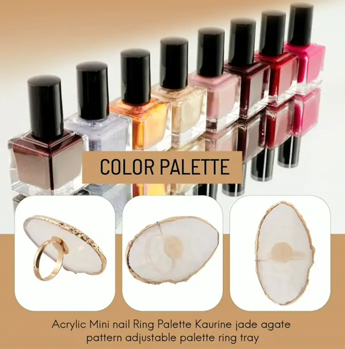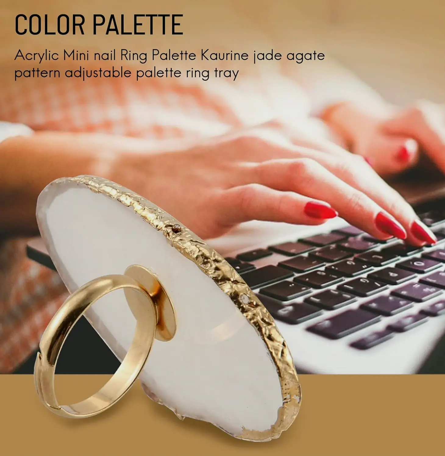 The Resin Stone Finger Art Palette Plate is ideal for mixing gel polish, cream foundation, and other nail products. Its compact design allows it to be convenient for usage around your fingertips.