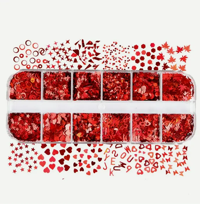 Holographic Love Nail Art Glitter Flakes, Valentine’s Nail Paillettes Decorations