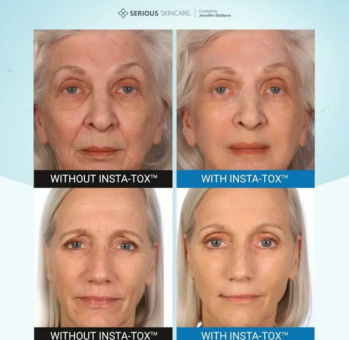 Reduce the appearance of wrinkles, under-eye circles, and crow’s feet with our proprietary formula. Experience rapid results in just three minutes! Our fast-absorbing Insta-Tox serum temporarily firms and lifts for up to 12 hours. Safe for use around the eyes, minimize enlarged pores, and get a younger appearance. Shake well before use, and read provided directions for optimal results. Cruelty-Free and Manufactured in the USA. For delicate skin, conduct a patch test before full application.