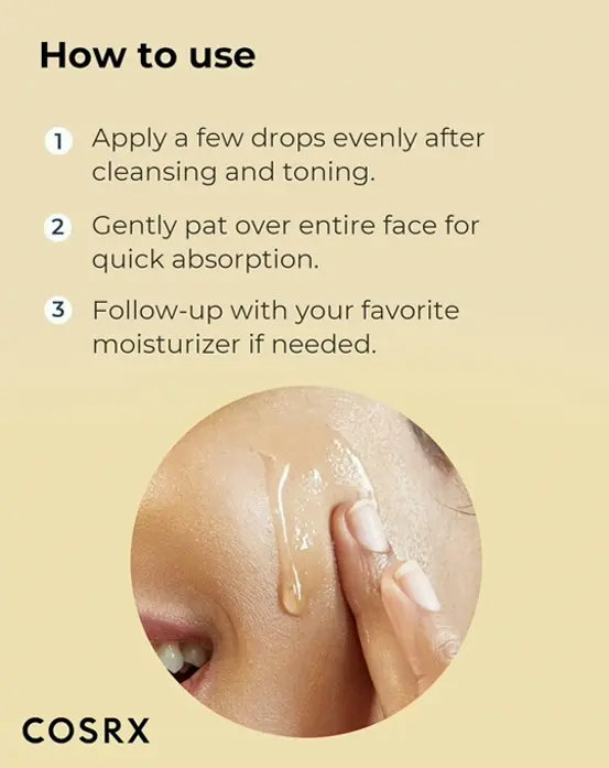 Brand Guidelines: Every COSRX products are made with skin ingredients which alleviate irritated epidermis. Non-allergenic, Dermatologist approved, Cruelty-Testing FREE, Paraben-FREE, Sulfates-FREE, Phthalates-FREE. Please inform that the expiration date on this product is noted in Korean date system, which goes by Year/ Month/ Date (YY.MM.DD).