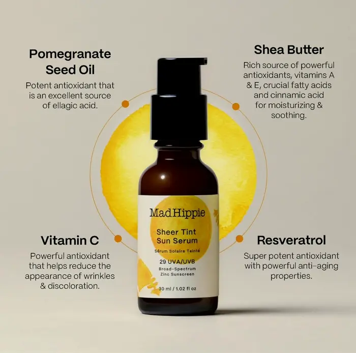 Protect your skin from the sunlight’s damaging rays with a nourishing tinted moisturizer containing beneficial ingredients to help fight oxidative stress. This silicone-less sunscreen (SPF 29 UVA/UVB wide coverage) mixes flawlessly into most skin tones. Includes non-nano zinc oxide, making sure particles remain on the skin until washed away. Apply as the final step in your AM skincare routine.