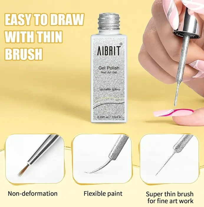 2024 CLASSIC Gel Set – AIBRIT gel linerpaint collection includes 4 timeless colors: Gold, Bright Silver, Classic Black, and White. Perfect ideal all gel designs. Eco-friendly & Safe – Nail art liners for manicure use professionally designed, which makes it safe and has low odor. No strong chemicals or glue that lead to weak nails. Fine Brush Built-in – Our gel polish features a built-in thin applicator, ideal for novice. You can create accurate and professional-looking nail art. Tips: If the applicator is bent, soak it in hot liquid for 10 moments and it will be back to fine in no time! SIMPLE DIY – The nail polish collection just ensure you wipe your brush; otherwise, you’ll get a large spill. Suitable for French manicures, reflective nail art, silver detailing, unique nail art, textured nail charms, sparkly silver nails, aura nails, gradient styles, and so on. NOTICE – Gel polish gel polish needs foundation and sealing layers, THIS IS GEL POLISH. IT MUST BE CURED USING A LED LAMP. The Proper Method Will Last For 28 Days. Do not hesitate to reach out to us if you have any concerns.