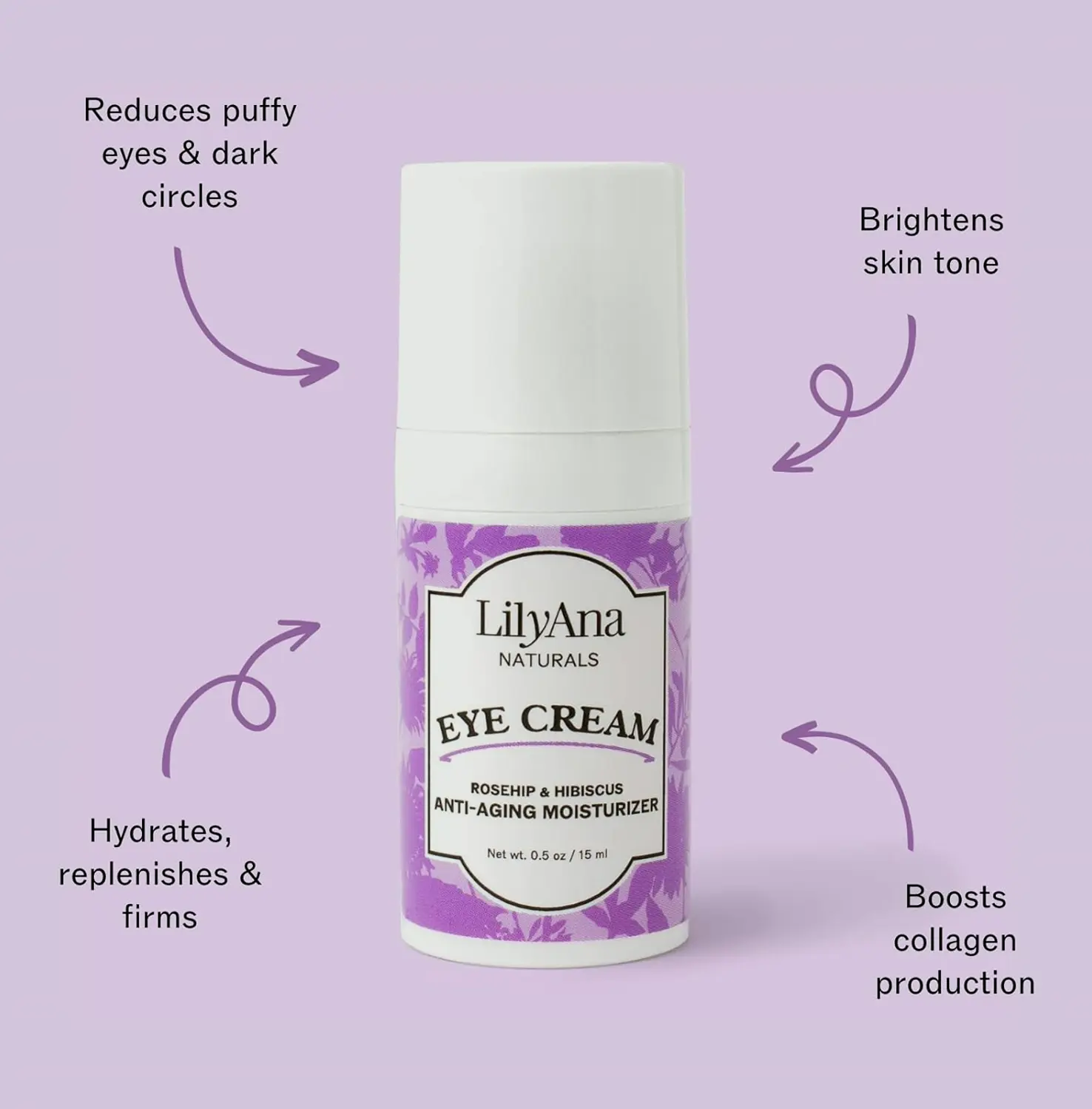 Deeply hydrates and reduces swelling and eye circles while smoothing the appearance of wrinkles. Formulated for both women and men, this anti-aging eye lotion soaks in rapidly to raise, hydrate, and tighten skin.Reduce under-eye bags with our distinct rose hip and hibiscus flower plant-based complex. This illuminating eye cream focuses on pigmentation and dark circles, balancing the skin tone. Our hydrating line eye cream softens the appearance of fine lines and offers all-day care. Suitable for every complexions and can be applied day and night. Clean, vegan, and safe formulation, free from sulfates, parabens, and phthalates. Cruelty-free; we never use animal testing.