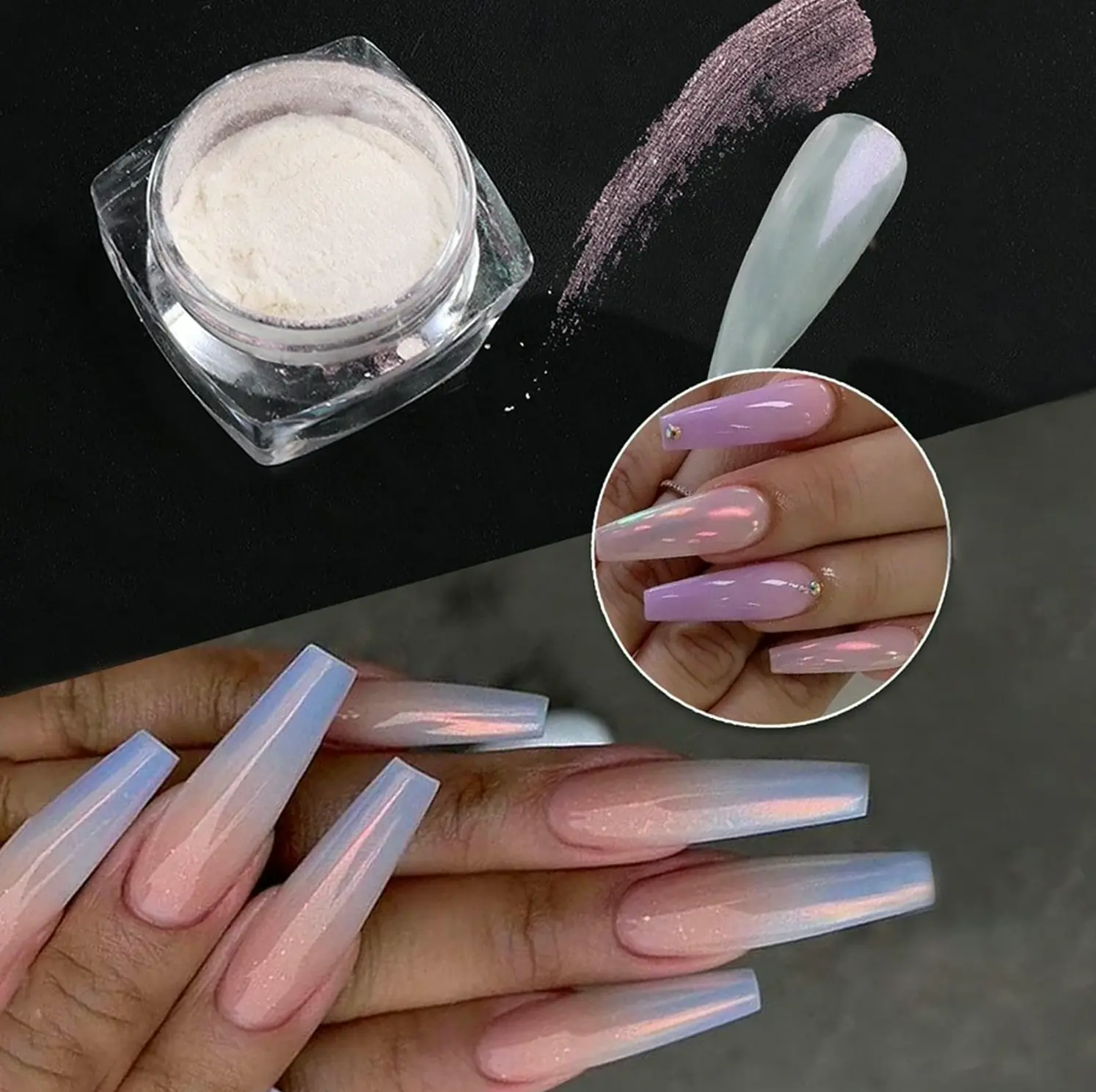 Silky Shimmering Metallic Nail Pigment Set includes 6 unique colors of iridescent manicure powder and 6 nail application sticks. The pigment has a sheen effect that enhances your gel color. Wide Application: The mermaid powder can be applied on UV manicure polish, fake nails, real manicures, polymer, and additionally as creative designs at home, on glass, tattoos, and mobile cases. High-Quality Blend: Made of ultra-fine and silky opal shimmering pigment, creating your manicure a gleaming chrome finish. Simple to Use: The super fine pigment is easy to apply; to achieve the best results, apply a base layer and a no-wipe top layer. Ideal for new users, simply adhere to the steps. Excellent Service: If you have any inquiries or dissatisfaction with the product, do contact us, and we will offer you a 100% money-back guarantee.