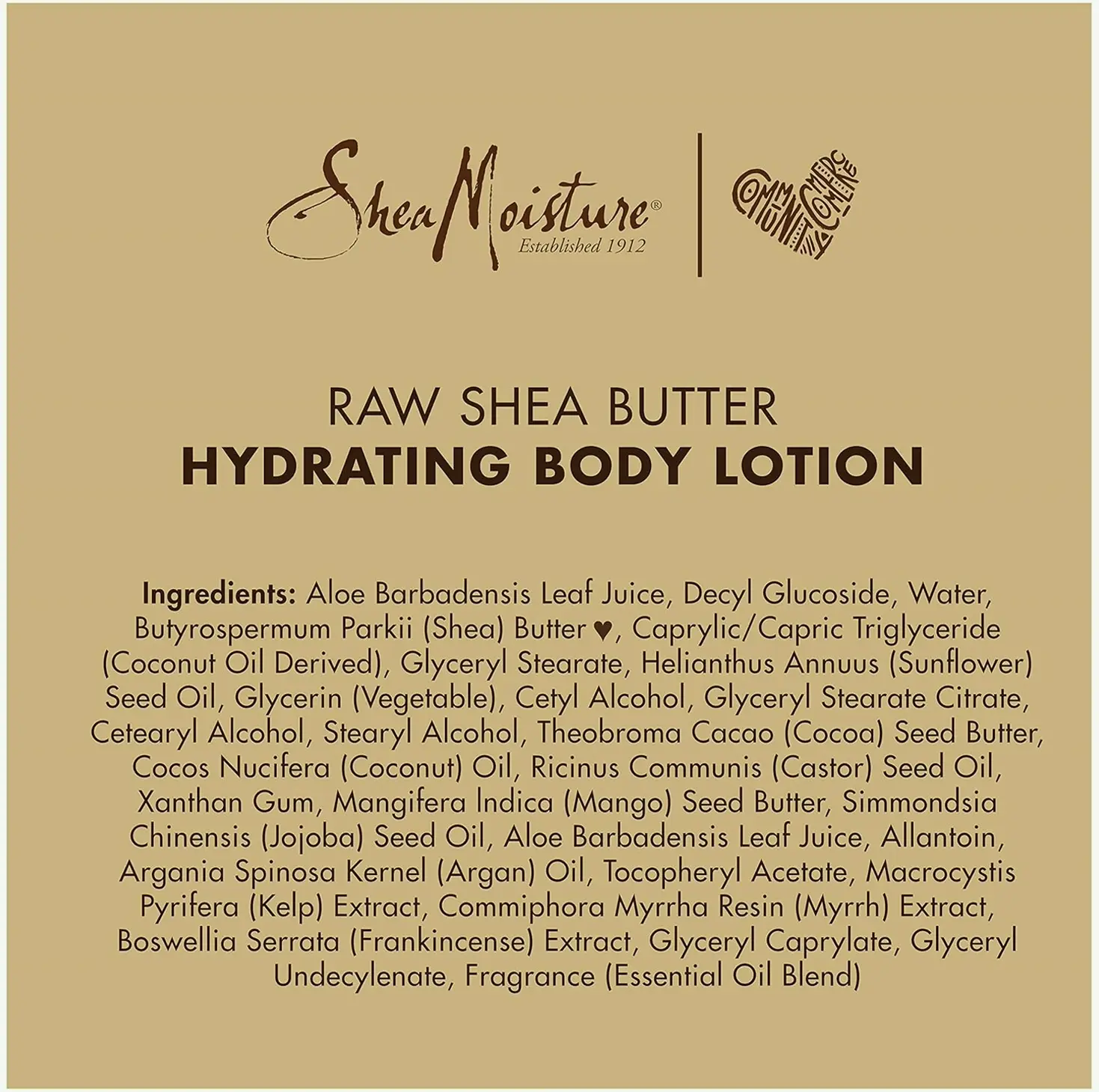 SheaMoisture’s Raw Shea Hydrating body lotion intensely moisturizes dry skin, rejuvenating lackluster appearance. Infused with fair trade shea and coconut, this product leaves your body feeling soft and revived. Created without parabens, it combines shea butter and nourishing oils, suitable for use on both hand and body. With the addition of frankincense and myrrh, this cream aims to revitalize depleted skin. Use as a hand lotion and foot lotion, concentrating on rough areas for optimal results. Formulated without parabens, phthalates and mineral oil.