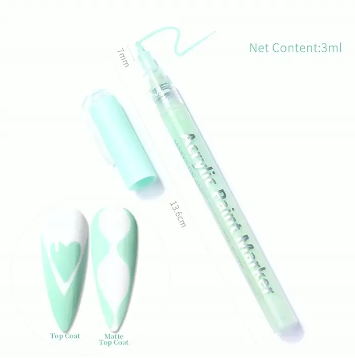 Nail Polish Pen: Vivid color, high saturation, good adhesion, no shrinkage, no cracking, no yellowing. Water soluble ink, safe and non-polluting, comfortable to hold and endurable.