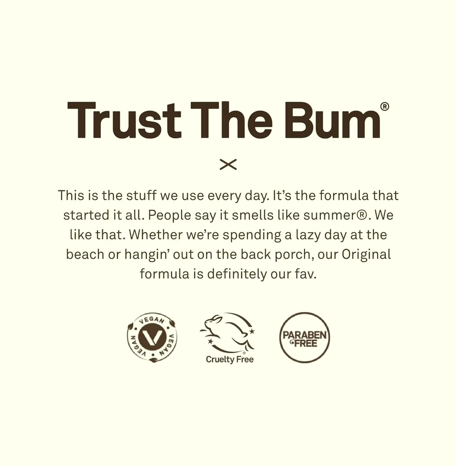 TRUST THE BUM. What does this imply? It means rely on us, the beach dwellers and require products that perform on the wildest days in the sun. The reality is, when you make items to protect the people you care about, you make ‘em superior.
